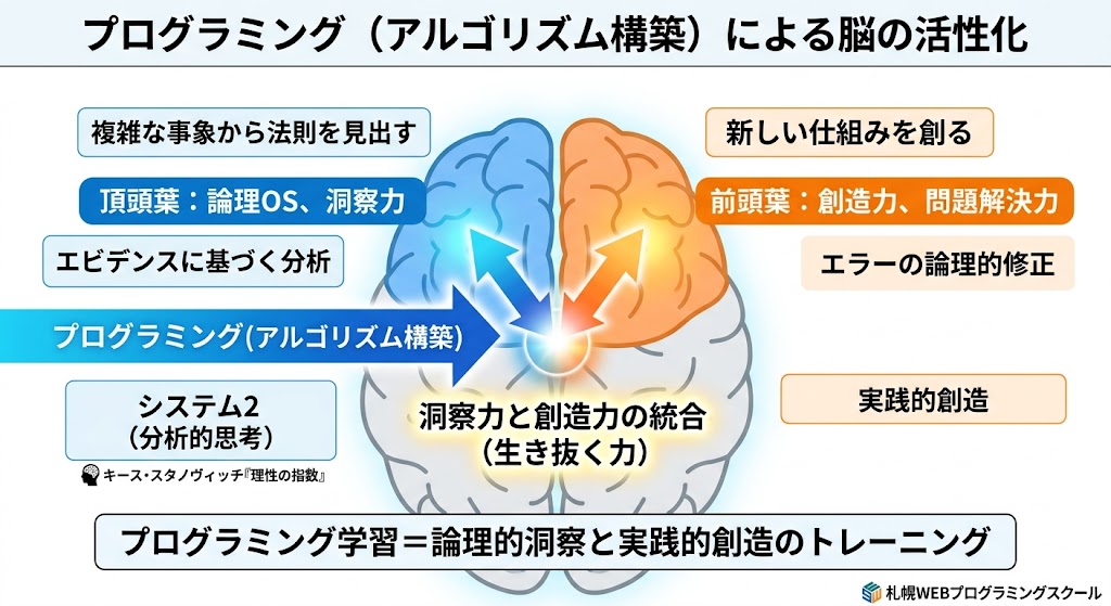 札幌WEBプログラミングスクール小学生・中学生・高校生コースでは、創造力ある人間、ソクラテスの『無知の知』の認識と基盤とした確かな判断力のある人間の育成を目標にしています。
